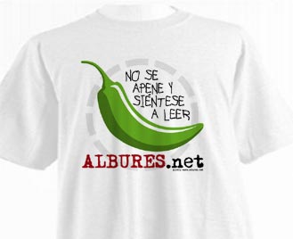 ![]() Gratis para que la agarren con confianza. Como un obsequio a los lectores de la ANATOMIA DEL ALBUR aquí esta la camiseta alburera. ¡Pa que se note que son albureros de a deveras y por amor a la camiseta! Para obtenerla sigan las instrucciones.